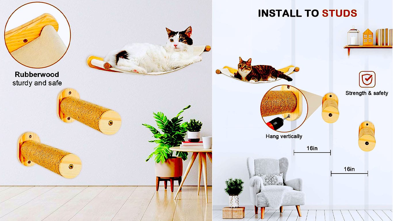 Cat Wall Shelves with Step , Cat Shelves for Wall with Step, Wall Mounted Cat…
