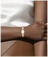 Model Specifications 14504417: This watch is part of the women’s Sammy collection. This model features a beige ‘C’ logo dial with four gold-tone dot indices. The dial also features gold-tone hour and minute hands. A gold-tone stainless steel case frames the dial. The case measures 22mm in diameter. The watch is finished with a gold-tone stainless steel bracelet.