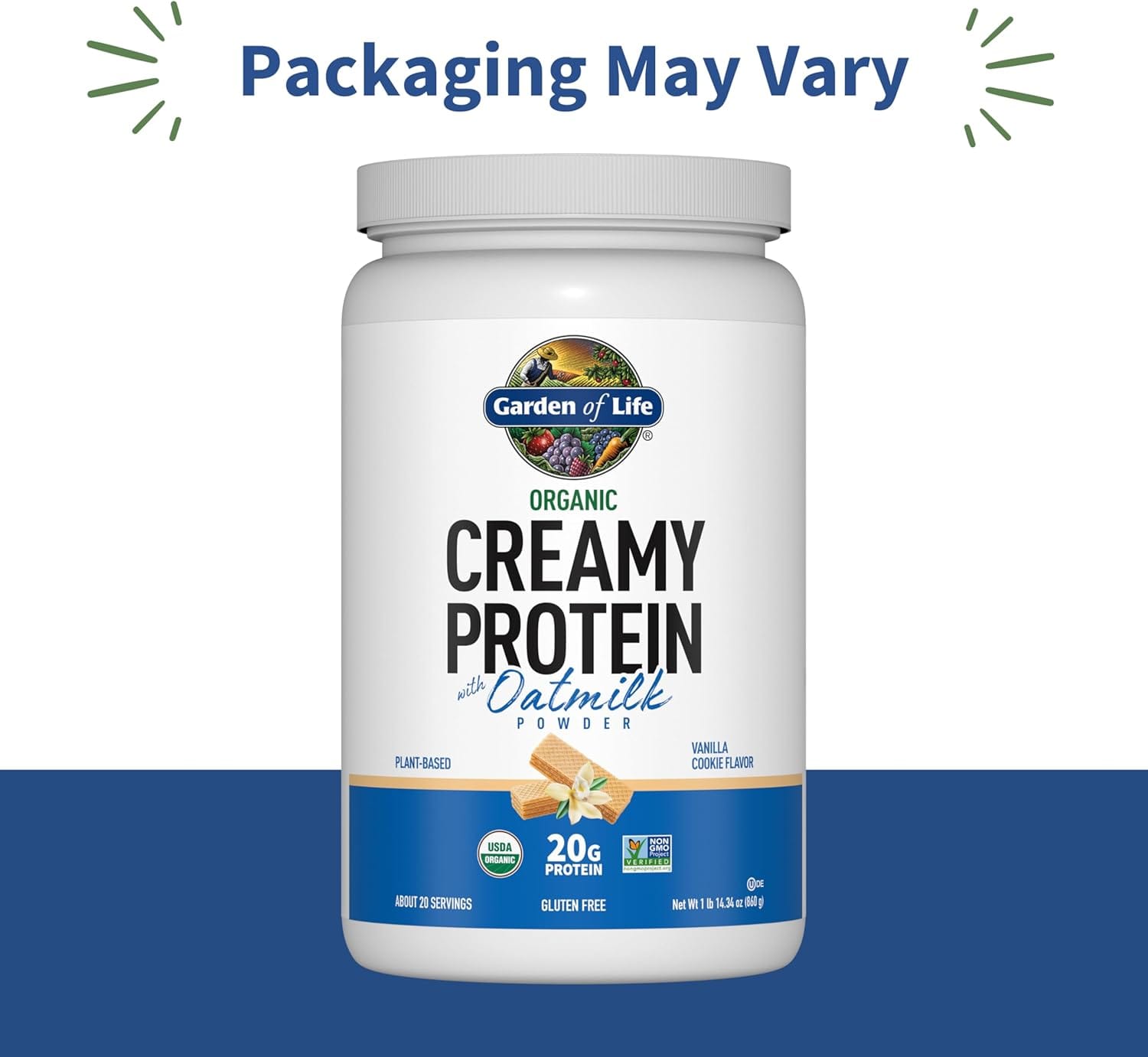 Garden of Life Creamy Vanilla Cookie Protein Powder + Oatmilk 20g Organic Vegan Plant Based Protein, Coconut Water, MCTs, Sprouted Grains, Prebiotics, Probiotics – Non-GMO, Gluten-Free, 1.90 LB